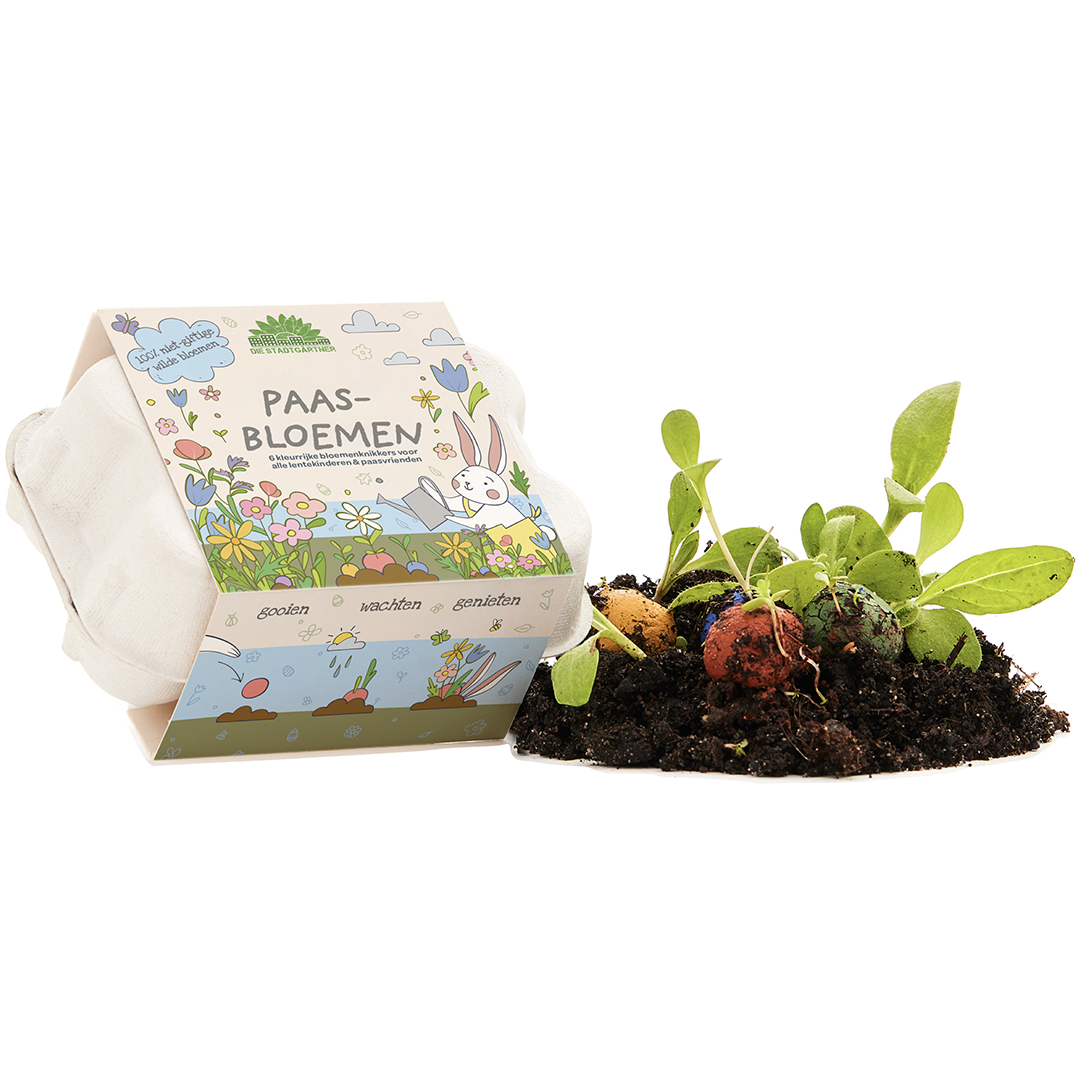 đ° Paaseieren maar dan anders!: De kleine, kleurrijke bloemknikkers in het mini-eidoosje zijn voorzien van een kleurrijke paasbanderol en brengen potten en bloemperken tot leven.