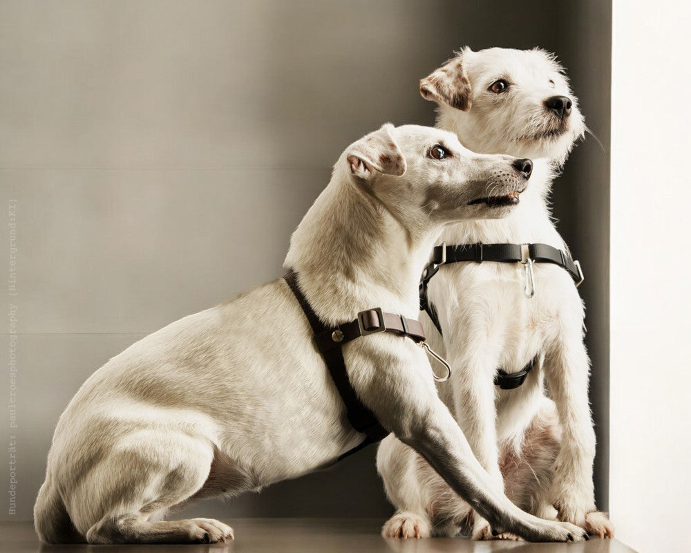 - Bremst den Hund bei Straffung der Leine sanft an der Schulter ab und vermittelt kein Gefühl der starken Bedrohung (Halsband)