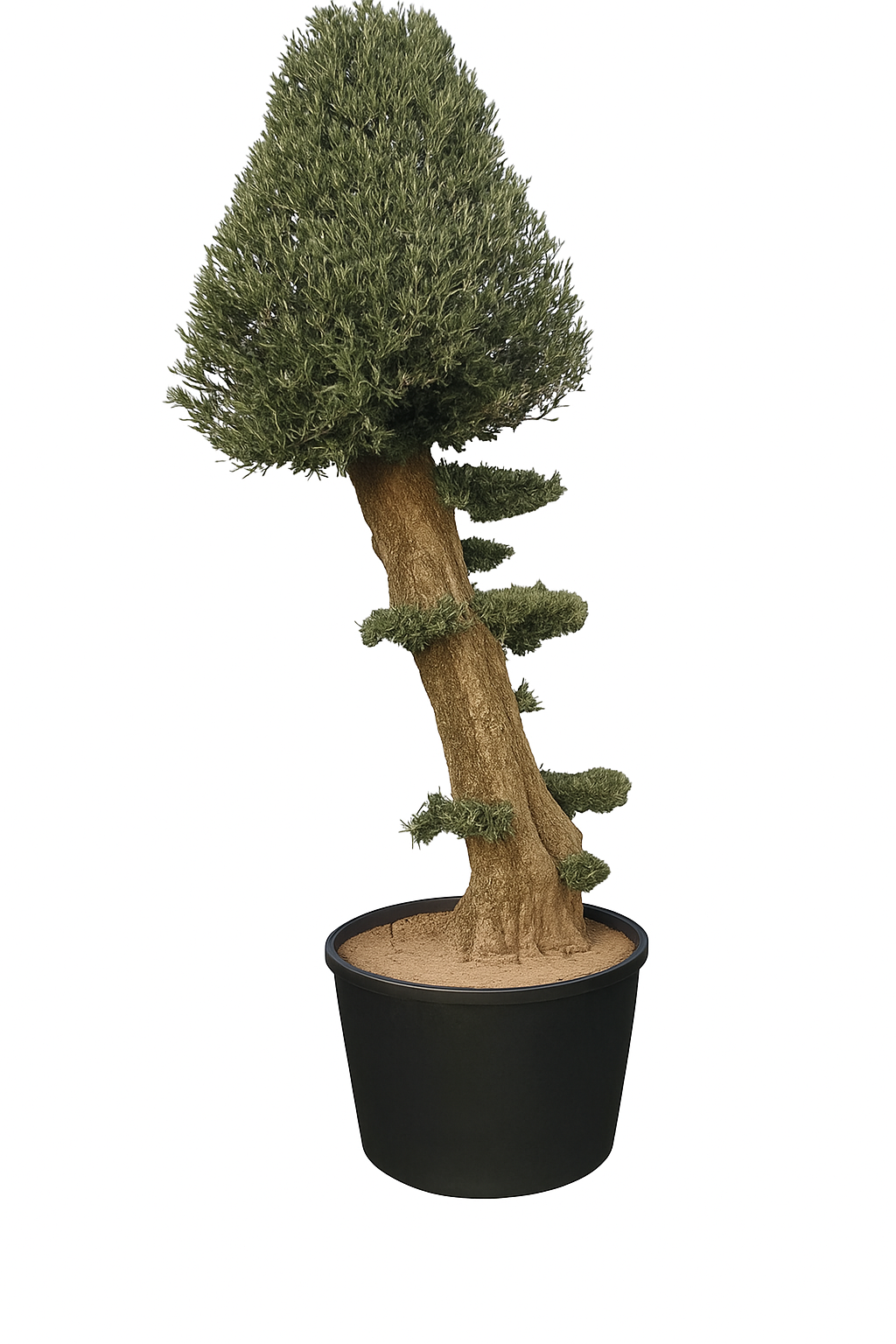 Großer Olivenbaum (Olea europaea Formschnitt ) im Pflanzkübel – Mediterranes Unikat, ca. 2–3,30 m Authentische mediterrane Atmosphäre für Ihren Außenbereich: Dieser imposante Olivenbaum besticht durch seinen charaktervollen, oft bizarr gewachsenen Stamm und die dichte, silbrig-grüne Krone. Als mehrjährig gepflegtes Naturunikat bringt er südländisches Flair und zeitlose Eleganz in jeden Garten oder auf jede Terrasse. Der robuste Olea europaea gedeiht an sonnigen, warmen und windgeschützten Standorten optimal. Mit seiner Winterhärte bis etwa –10 °C meistert er deutsche Winter problemlos, sofern der Standort ausreichend geschützt ist. Jeder Baum ist ein Einzelstück mit eigenem Charakter – perfekt für anspruchsvolle Gartengestalter, die Wert auf Authentizität und botanische Qualität legen.
